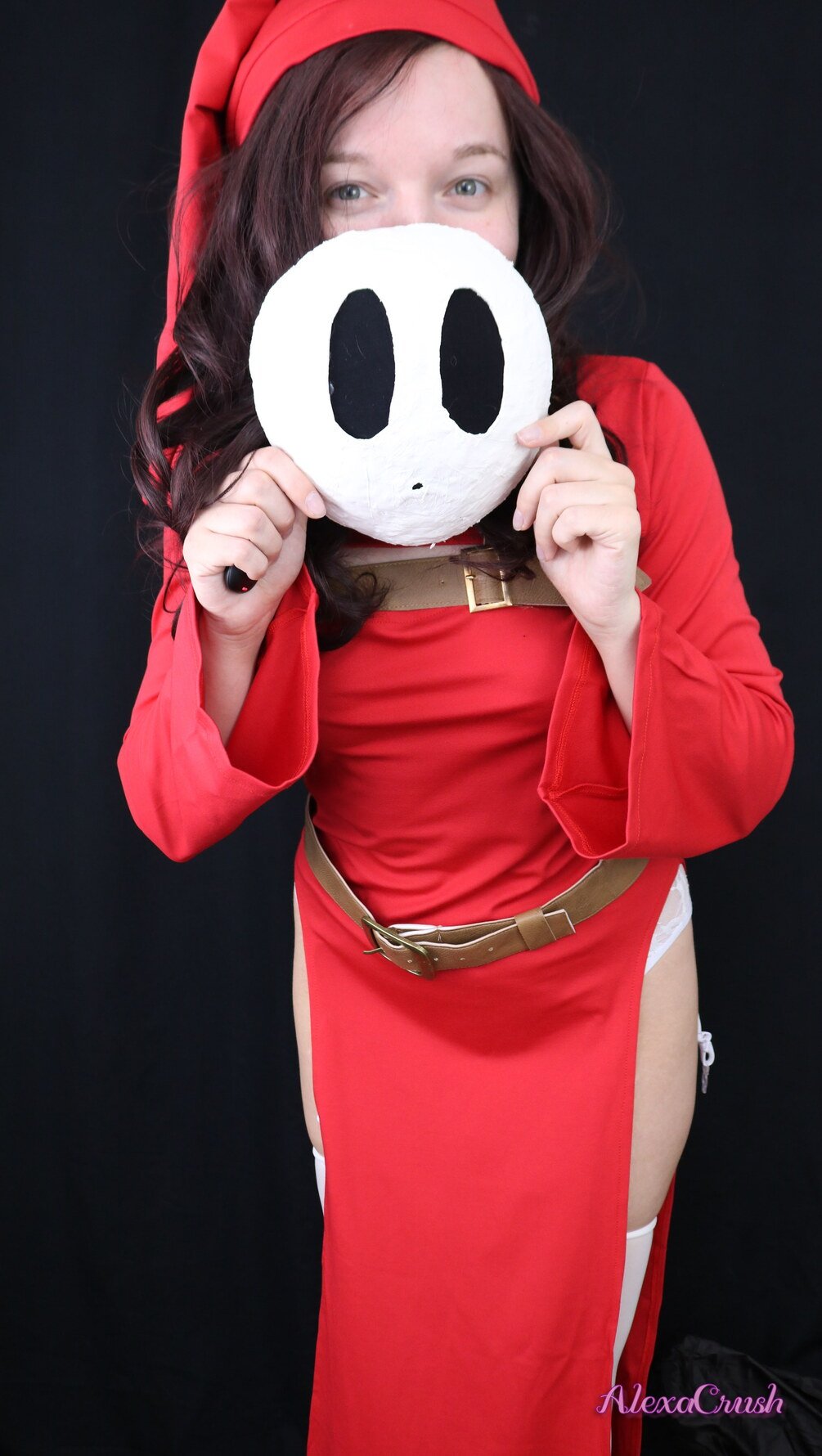 What's under the Shy Guy mask? A smiling dorky chick who thinks sexy Shy Guy is hilarious xD Lewd but not nude, this is a cute little photoset sure to bring a smile to your day! Mask made by AlexaCrush